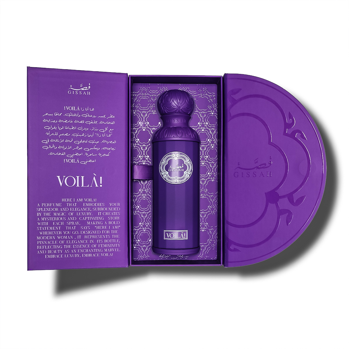 ها أنا ذا، أو “Voilà”! عطر يجسد روعتك وأناقتك، محاطاً بسحر الفخامة. يخلق قصة غامضة وجذابة مع كل رشة، ويترك انطباعا قوياً يقول “ها أنا ذا!” أينما ذهبتِ. مصمم للمرأة العصرية، حيث تتجلى قمة الأناقة في زجاجته، ويعكس جوهر الأنوثة والجمال كمعجزة ساحرة. انغمسي بالرقي، انغمسي في عالم Voilà! العائلة العطرية: زهري، عنبري، مسكي الروائح العطرية: – مقدمة العطر: اليوسفي، زهرة البرتقال، زهرة الهليوتروب – قلب العطر: عسل، ياسمين، ورد – قاعدة العطر: مسك، عنبر